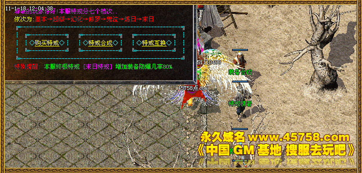 【财神送宝】:每天19.30将会把顶级装备洒落在周围
