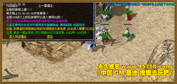 【玛法争霸】:5点,土城左上角进入,最后一个离开获得(乾坤石2)和20亿元宝
