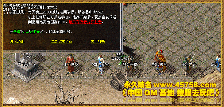 高级地图:狂暴之泉,皇宫大殿,层次越深,暴率越高.唯一可暴出新装备→究级套装的地图!四级技能2小时开放一次,天下第一称号可获1.2倍攻击,天神戒,死神戒均为1.2倍攻击属性!