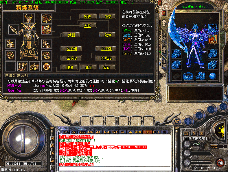 灵魂系统:为装备附加灵魂属性,致命一击、物理防御、物理攻击、经验、等等。