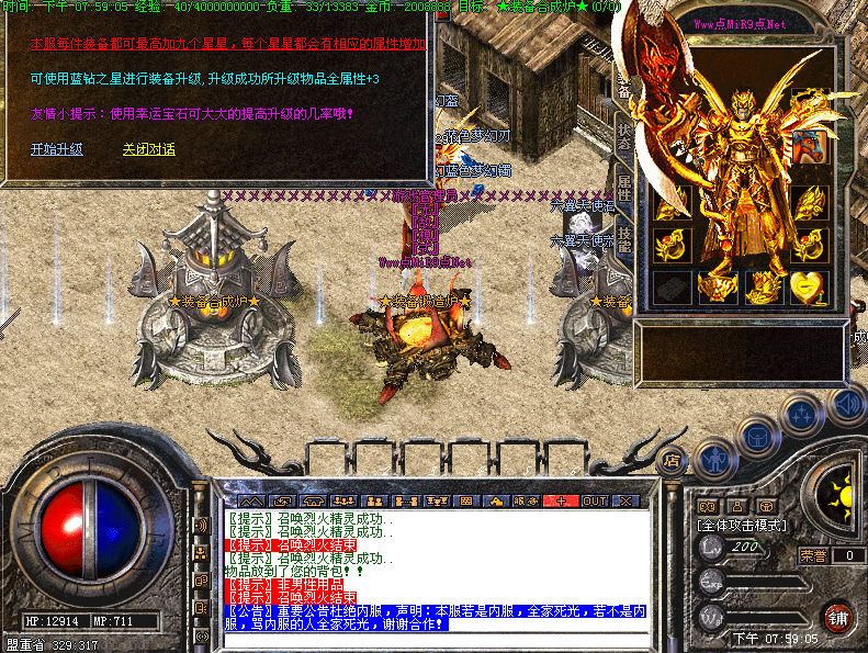 本服承诺:装备一切靠打,决无内服,禁一切外挂。