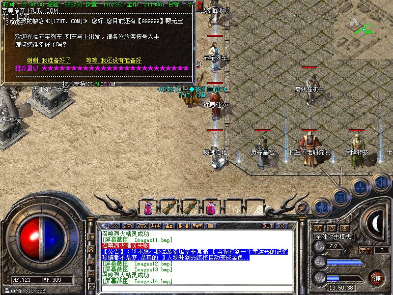 [元宝列车] 击杀怪物,运气好的话可以获得元宝.