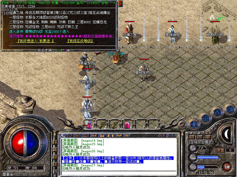 [地图亮点] 天堂门、十二生肖、狂暴泉、赤月豪门、禁地地宫、蓝魔基地、魔神绝地、龙神大殿等