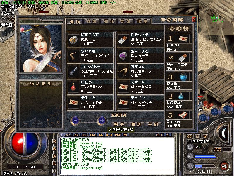 [元宝回收] 多余的装备可以兑换元宝经验等不同的奖励.
