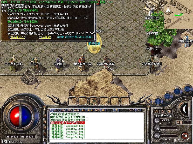【公告】:⒚本服.每天晚上19:00分—19:30分系统会弹出窗口提示[行会争霸大战、激战30分钟]胜利的行会、行会所有人员奖励元宝888个....