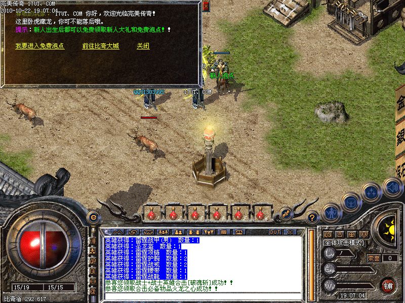 【秒人疯牛】 增加自助刷怪秒人皇帝和秒人疯牛王。爆率超高哦!慢慢体念。