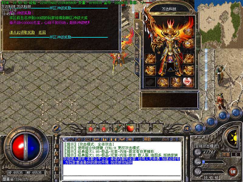 1.新手上线,不需要打怪,直接泡点到40级,送圣战大礼包!