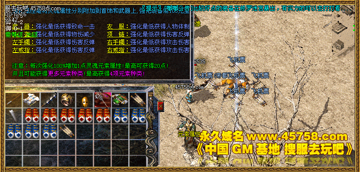新手上线1级,在新手接待员处领取装备一套,等级自动调整到36级,进入新手训练地升级,升级过程中系统会赠送双倍经验等,在升到60以后可以去石墓七八九层闯荡,打出的装备可以进行合成黄金,红域,蓝灵装备,从石墓转一圈差不多就80级了,从土城客栈附近小屋进贵族寺庙去打奴隶,金条暴率很高,然后在土城加入雇佣兵,普航班-初级装备地图, 我们对装备进行了全面的设置从黄金系列装备到轩辕装备都可以合成,对47件兵器增加破防属性,极大的降低了打怪难度,至于以后的游戏旅程就靠玩家自己来探索了!