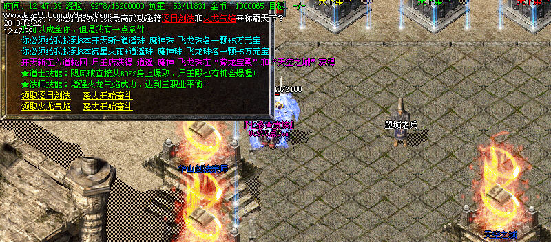 快速升级:强烈推荐 贵族泡点 和 元宝练级地图!聚灵珠(大)和(小)也是快速升级的通道喔 魔龙 烟花教主 王者天将 摇钱树等BOSS会爆