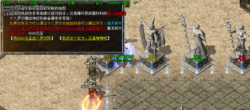 新增加地图:藏龙宝殿(简单的地图,强大的怪物阵容,爆终极装备和剑法合成珠)!