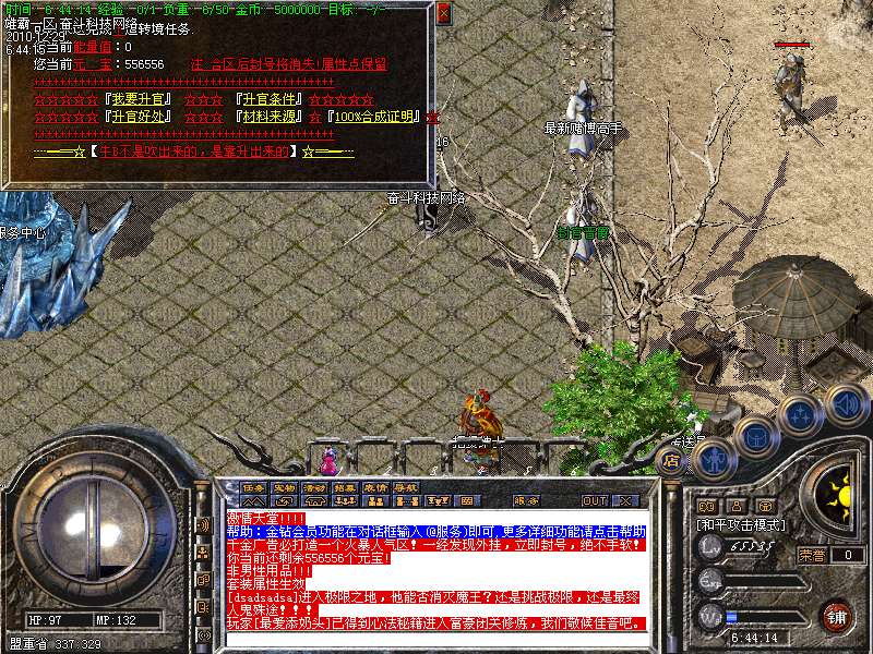 【升级方法】1.买双倍或三倍经验石打怪升级!2.回收装备升级!