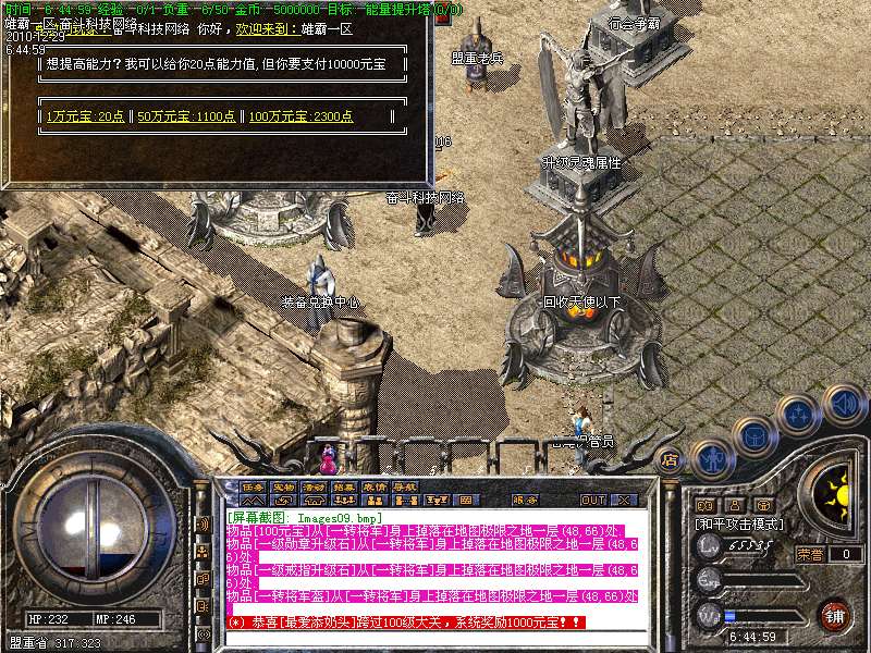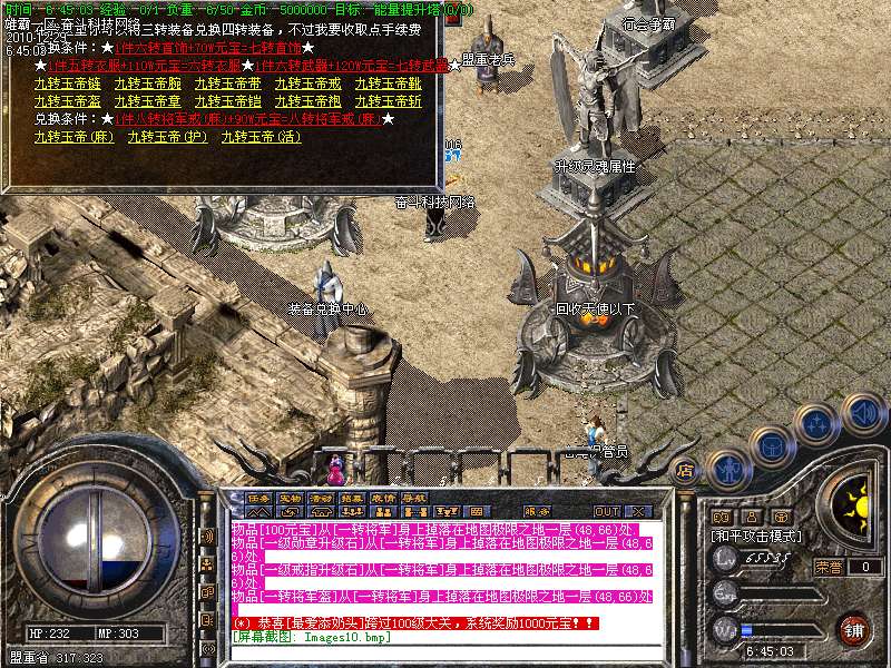 1、本F独家9转装备。。。极限7层。。装备绝对全部可以爆出。。不像有些私服打着装备全暴的名号。其实根本就暴不出来。。本F爆不出来死妈。。新手刚出来去土从右到左可以打到开荒装备。。然后够元宝的可以买两倍攻击石。然后转生。就可以去极限之地打转生装备了。。极限之地本F独家7层。1层爆1转。2层爆2转。。绝对的公平。。。3层爆3转以此类推