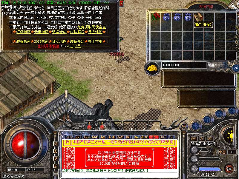 - ☉ V8引擎传奇端游【荒域专属单职业九大陆】Win一键端+配套补丁网站+架设教程