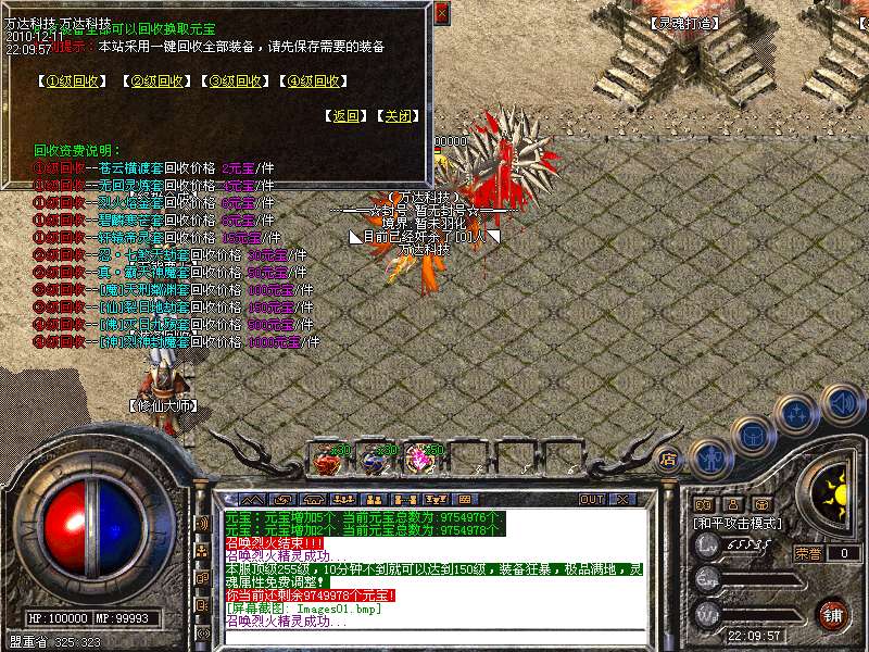 5.所有装备全部可以回收换取元宝,我们提倡绿色游戏,免费提供一切获得装备的途径和方式,回收可以给你带来大量的元宝奖励!
