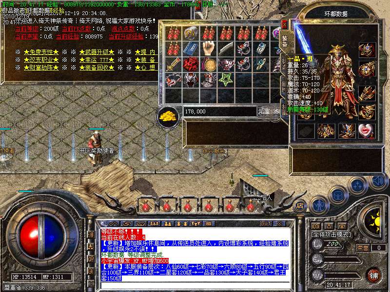 - ☉ 热血传奇单机版V176怀旧复古智能假人攻沙陪玩单机一键安装GM后台免虚拟机