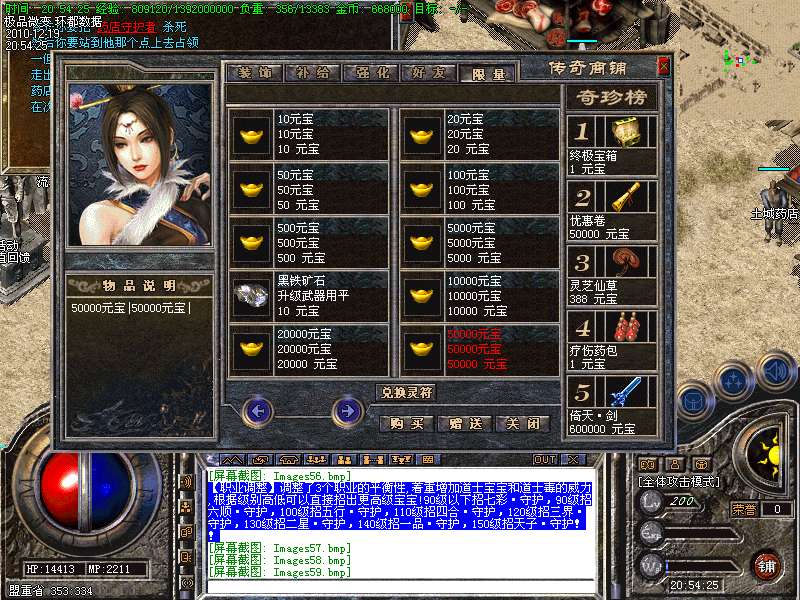 【公告】各个安全区自动喊话的NPC都是假的,系统喊话是红字和蓝字,所以请玩家特别注意不要上当.本服唯一客服无GM 会员命令为:@会员