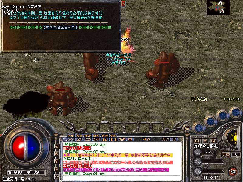 ≈竺魔★无间地图。完全免费开放进入.不需要任何费用.此地图一共八层,一层是专门练级地图.其他几层是打宝地图.里面的怪物都可暴出雷霆套装.战神套装.强化战神.精锐战神.