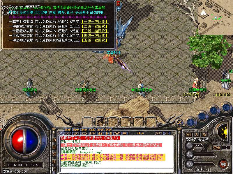 ≈本服增加元宝回收装备系统!打到多余的装备可以换大量元宝和经验!设置绝对合理。本服增加魔龙小怪暴元宝的哦,暴率很高哦,让不花钱的玩家能得到元宝。