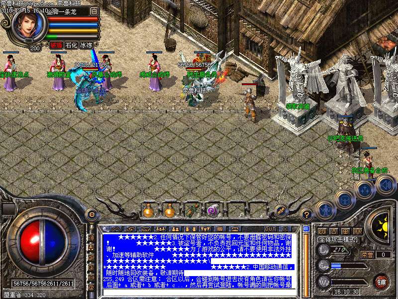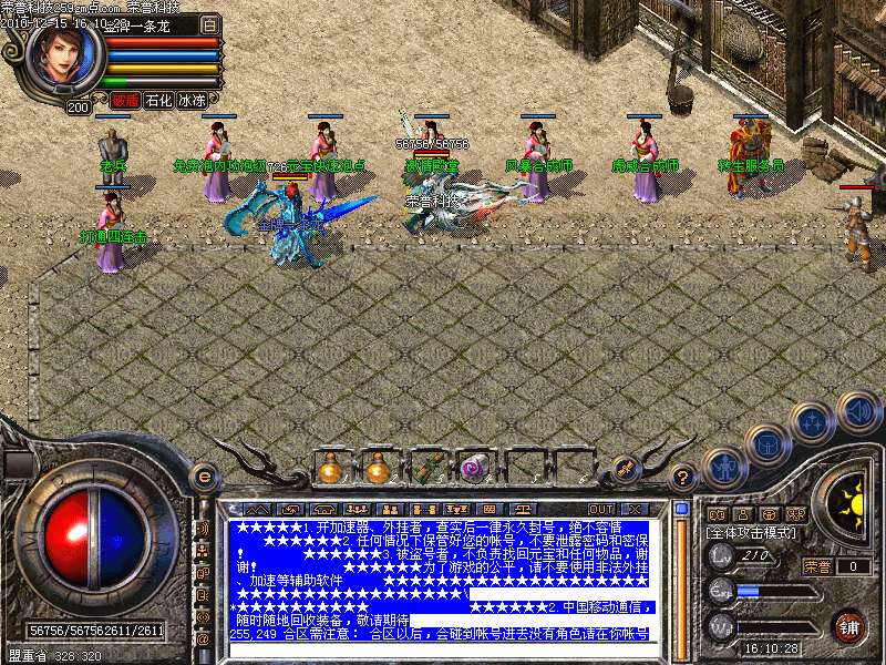 [特色]:人物上线连击技能全满.血脉全部打通. 爽爽