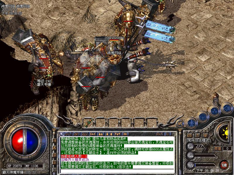 本站顶级两套装备都是依靠合成获得的,合成的物品全部可以在游戏中打怪获得,商铺也可以直接购买到合成宝石!