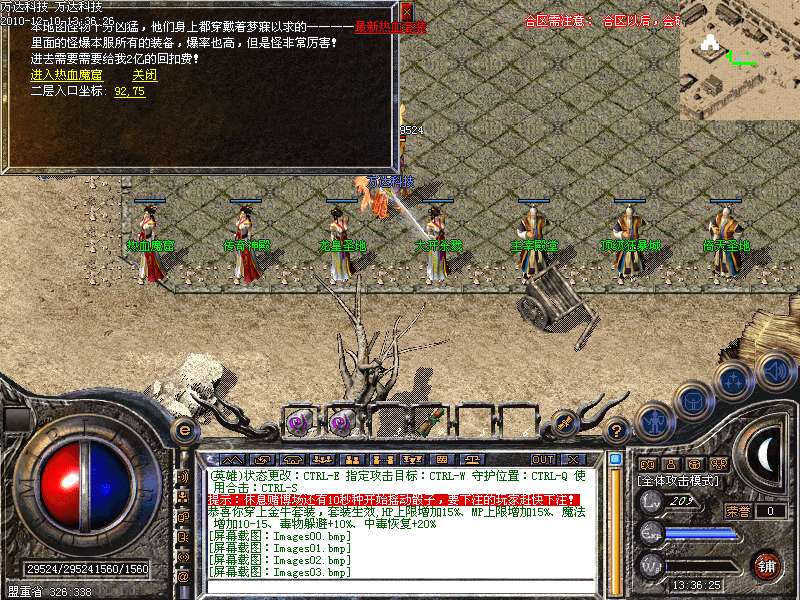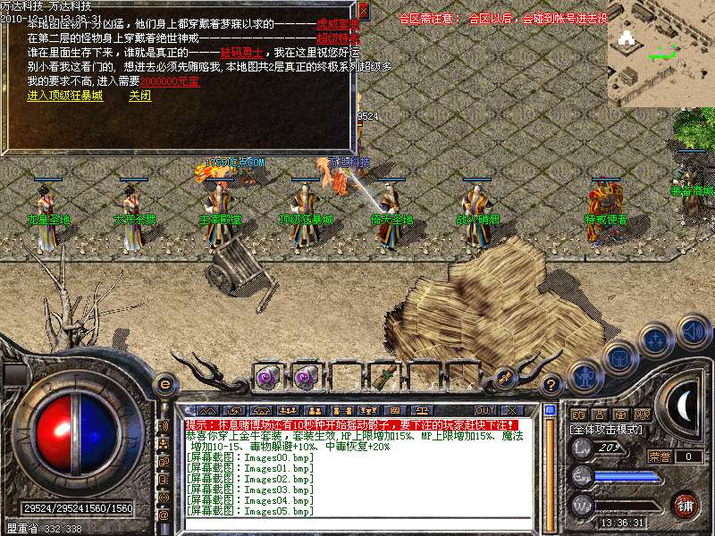 12.新增【大开杀戮】【龙皇圣地】【传奇神殿】【热血魔窟】新增地图绝对可爆全服所有装备装备,包括特殊戒指和物品