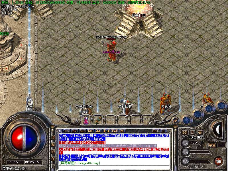 【公告】:新手打宝建议直接去激情打宝,一秒4万经验,边打宝,边泡点。70级后可去四个终极地图,能爆出必杀,倚天装备以及特戒。