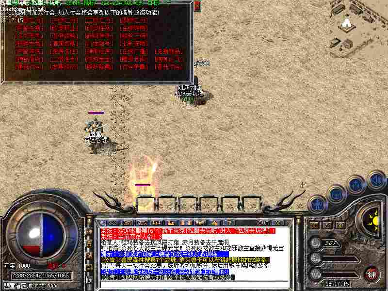 每天17.50-18.00可在行会管理处进入行会争霸地图,胜出行会奖励行会成员1.3倍经验及100点[安定度]]可在行会管理换成装备和技能书.
