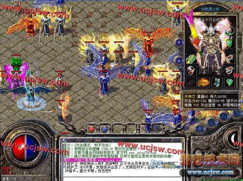 帝王系列:部分BOSS均爆出,七大城,新增人形怪物在深水小居、情缘每1个小时刷一个携带着灭世装备,会员地图1小时四个人型怪物!