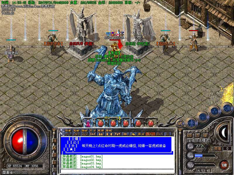 11.(☆) 沙城奖励█ 晚上10点〓 沙巴克皇宫内 █ 奖励300W元 宝 →