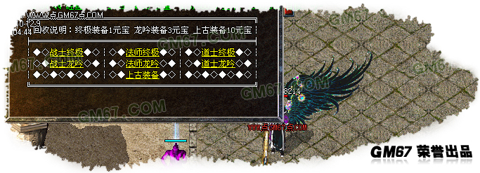 【装备合成】当你累计了一定数量的装备后可合成 更高一级的装备.比如2只(雷霆战戒)可以合成(雷霆战戒①).合到第十次为(雷霆战戒<终极>终极).第十一次为(龙吟装).这种玩法可以让你玩上一两年也不会烦腻.装备好爆.练级容易.