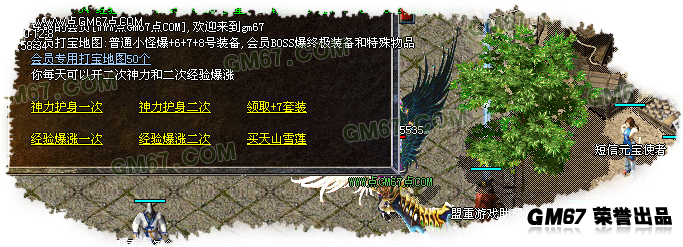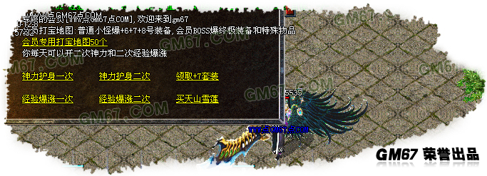 ★会员有50个专门打爆区域(直接爆+7+8+9号装备),会员火龙教主爆特殊物品.盟重土城药店旁边每过70分钟系统送出BOSS摇钱树,必爆大量装备道具等...