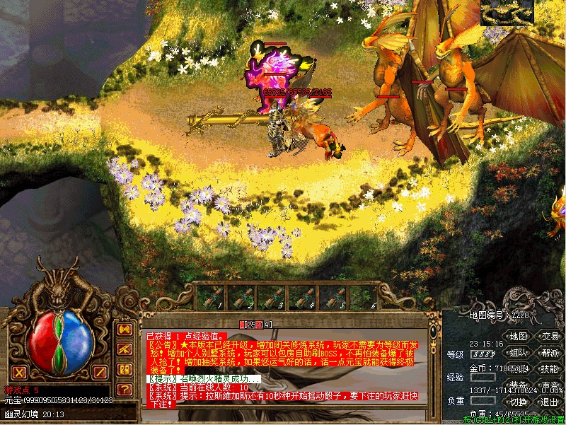 魔界黄金屋:进入一小时后自动回城,先进入黄金屋入口清完里所有怪物(刷新时间为一小时)方可进入黄金屋,黄金屋内必爆龙吟以上装备,建议玩家组队前往。