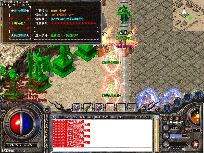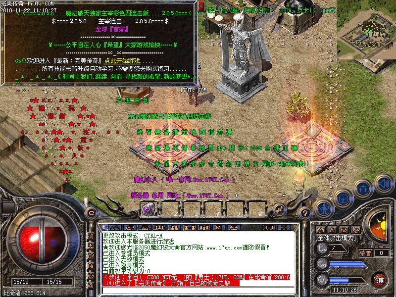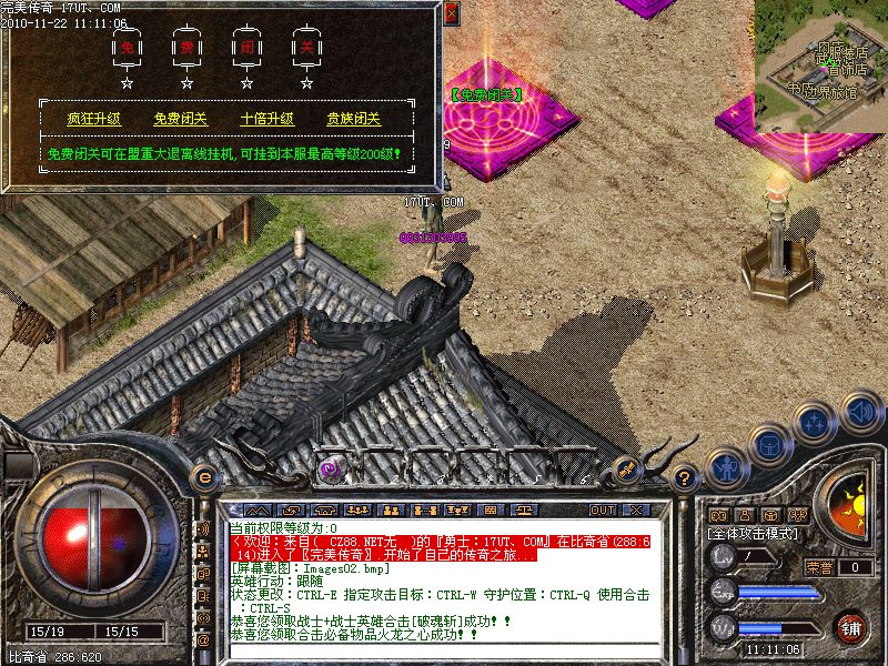 统领攻城:每天下午5点,各城市安全区刷一毁灭统领机率爆终极装备