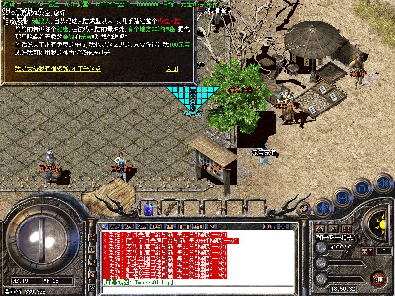 人物到达45级时系统将自动赠送100元宝!也可以击杀[万年树妖]获得!并有机会获得马牌哦!