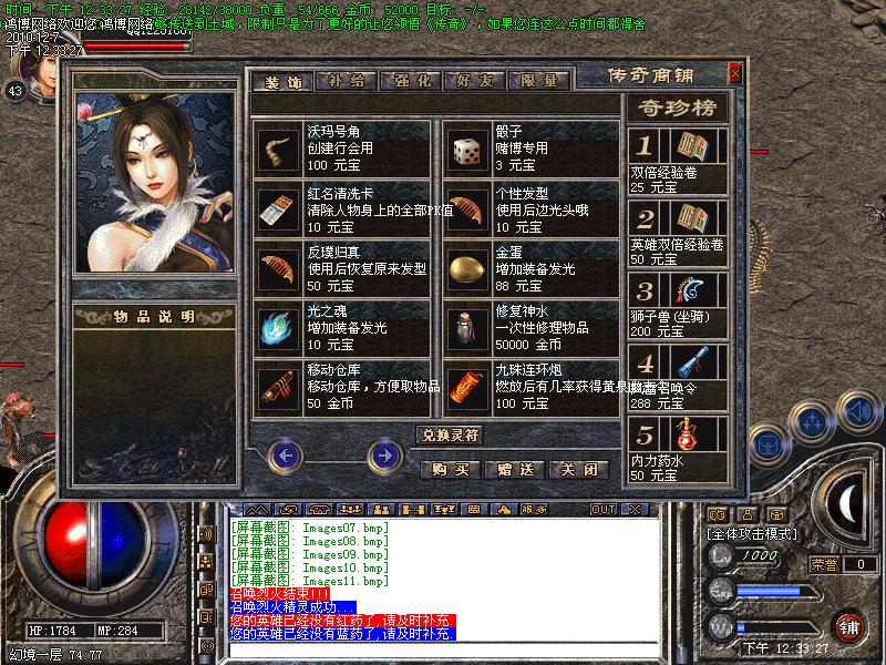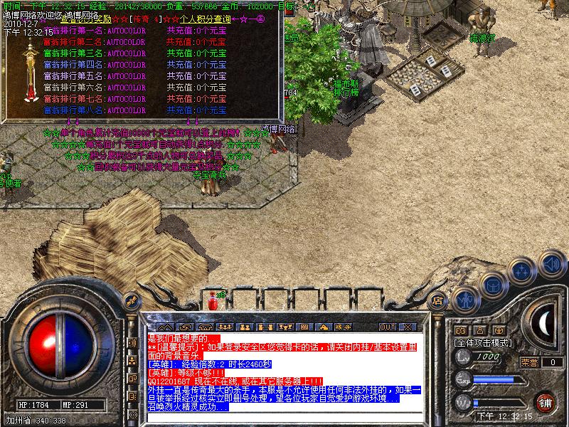 [元宝销售]:元宝永久价格短信1:100,点卡1:150,网银1:200,不打折,无优惠。每充值1个元宝可以获得1点的积分,积分可以进入积分地图打装备或兑换某些特殊物品...