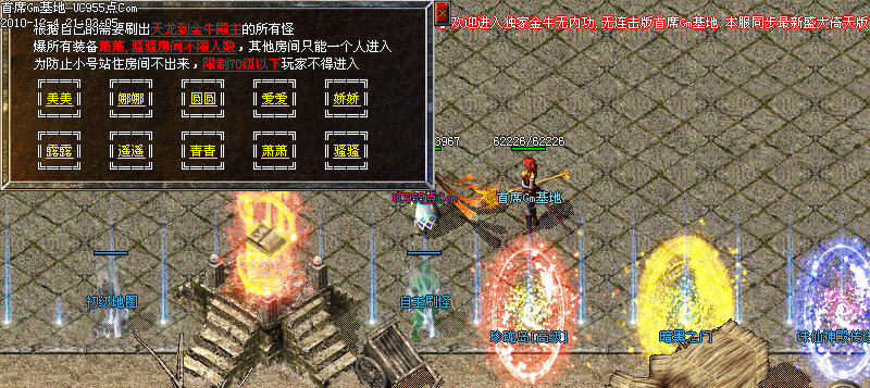 欢迎进入独家金牛无内功,无连击版本服同步最新盛大倚天版本.倚天劈地全屏技能.请大家尽情体验.....保证你不存见到过,元宝交易请到庄园点元宝使者,开通元宝交易再点出售和购买物品,不清楚请查看公告牌,另外我们将不定时更新给你新的感觉,本服所有装备靠打和合成,只要肯努力就有终结,若有看不到地图,装备或者怪的玩家请进盛大前100区让他自己更新完全即可。欢迎大家提出建议,一经采纳将给予一定元宝奖励,有你们的支持我们会更加努力。元宝交易请到庄园点元宝交易使者,详情请看土城公告牌。