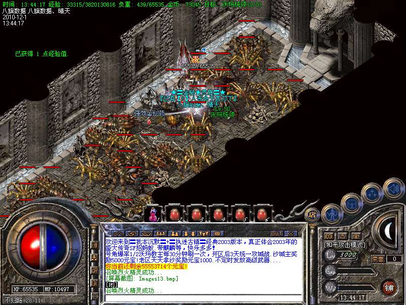 公告:本服新开65级副本和72级副本.24小时免费开放.里面全是精英怪物.就算你装备再好也得找几个朋友一起去.副本24小时全天开放.