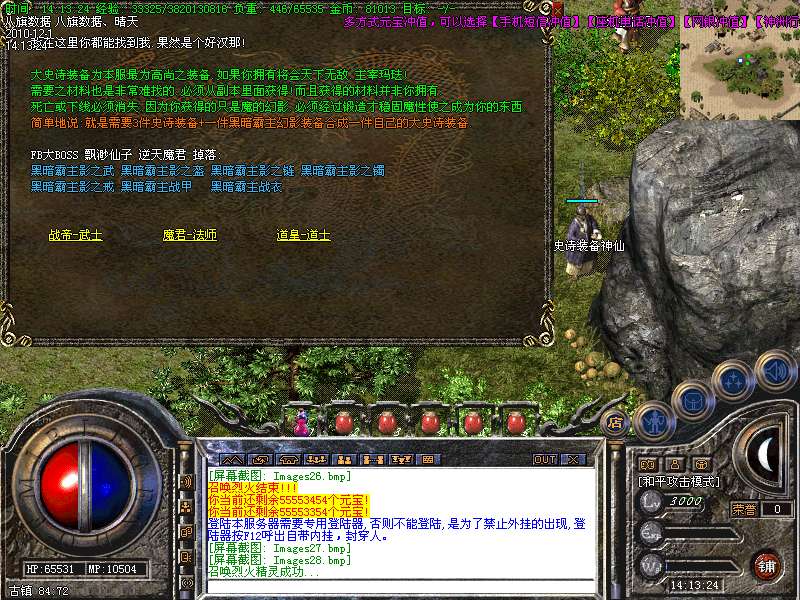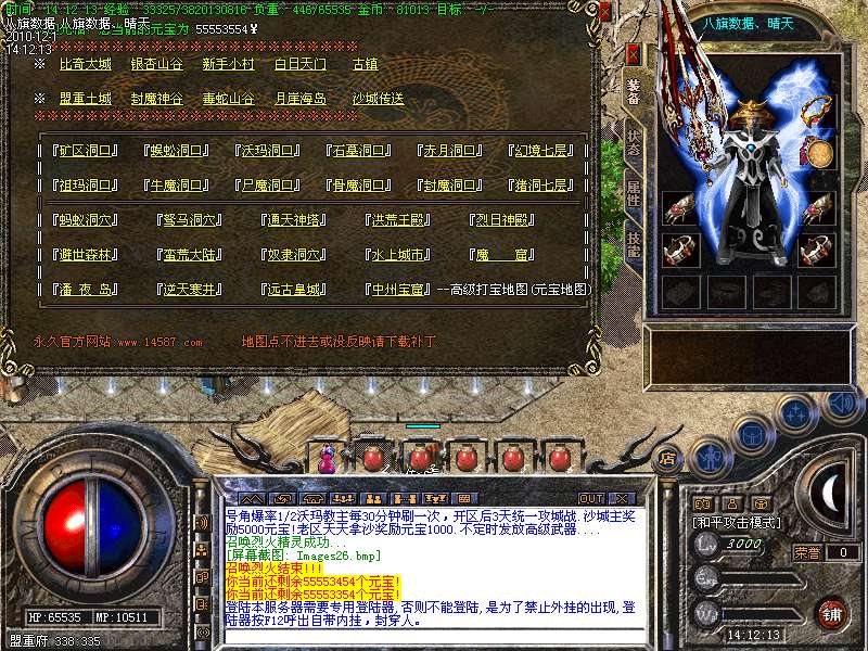 实现了装备升级和装备升星系统!让你的装备更加与众不同!本服除了元宝坚决会买其他东西。这里是打造长久服的摇篮!。