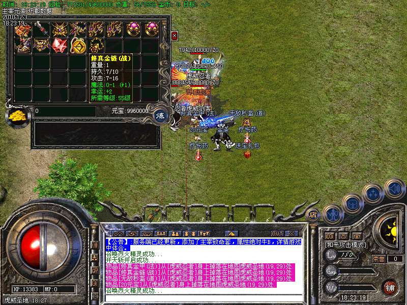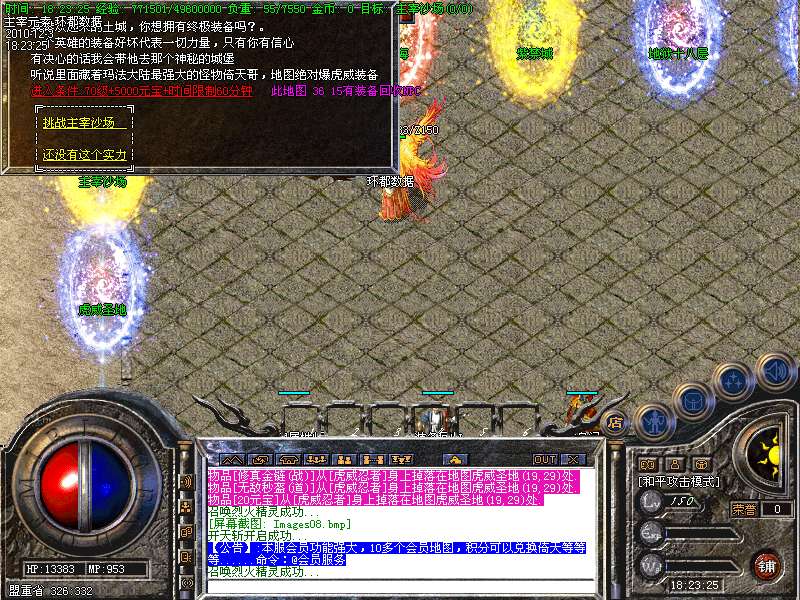 5、新加入虎威圣地和主宰沙场,小怪也可以轻松爆倚天、幸运之石,BOSS爆所有装备非常之高。