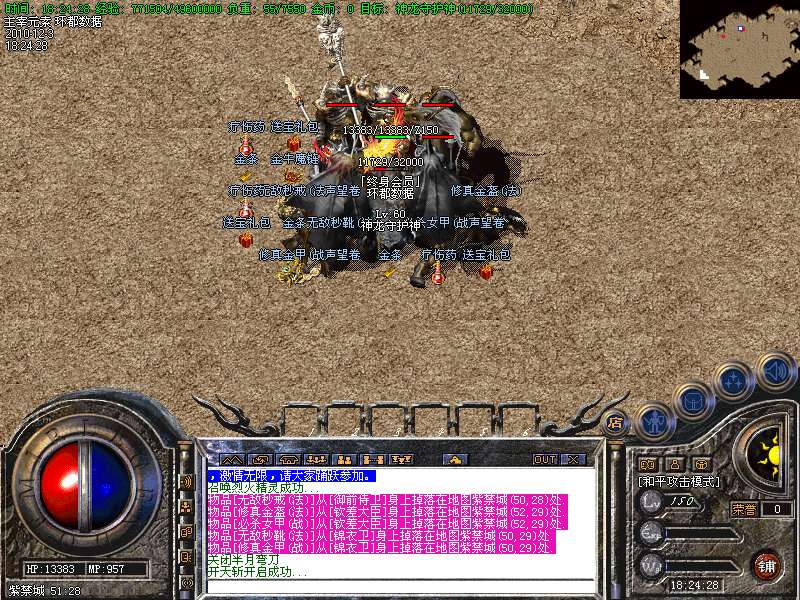 地狱18 中南海 紫荆城 锁仙阁 小怪爆:修真、无敌、必杀(爆率高) 。BOSS爆:必杀、倚天、虎威、幸运石(爆率高)。
