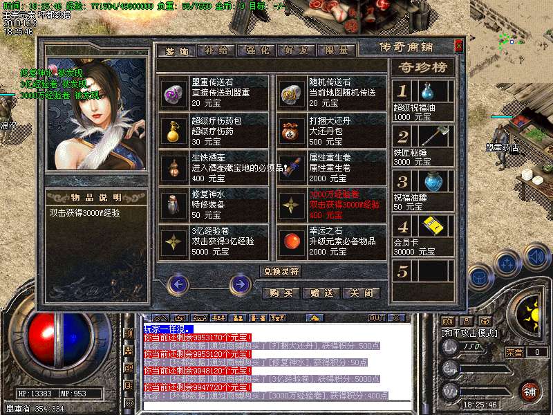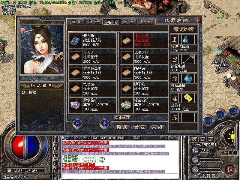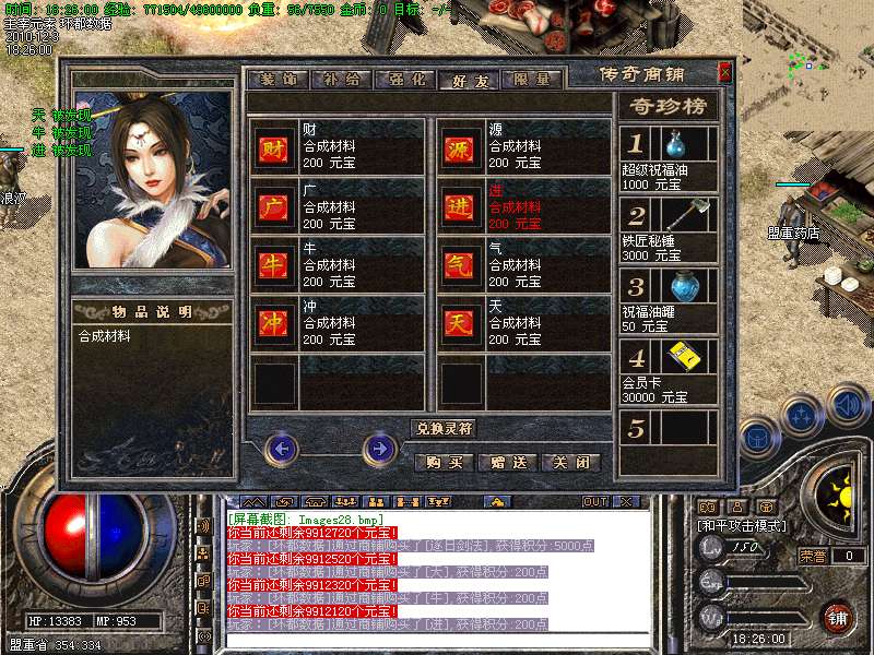 6、会员地图爆率高,超级打宝地图可以爆到一天类装备,会员功能可以使用商铺积分兑换倚天装备.
