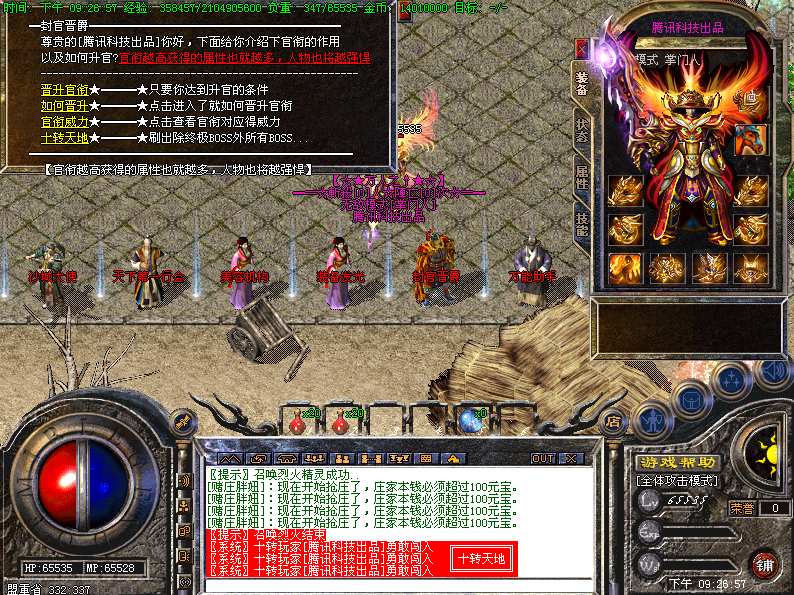 [封官晋爵]开放12次转生分配对应属性点.属性越多人物越强悍 对应官衔封号