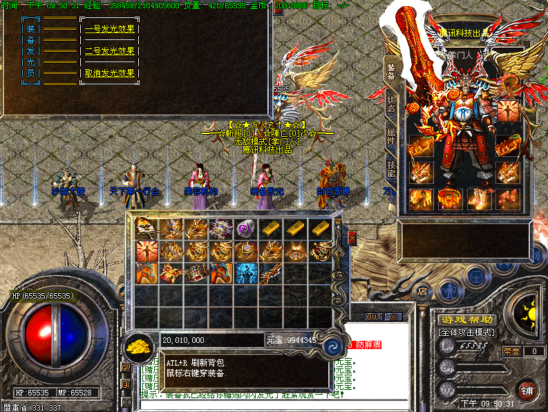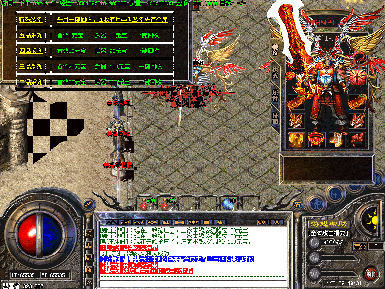[装备回收]采用一键回收系统最高奖励1000元宝.打到好的装备回收也是个获得元宝的好办法