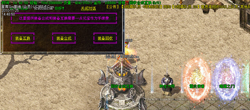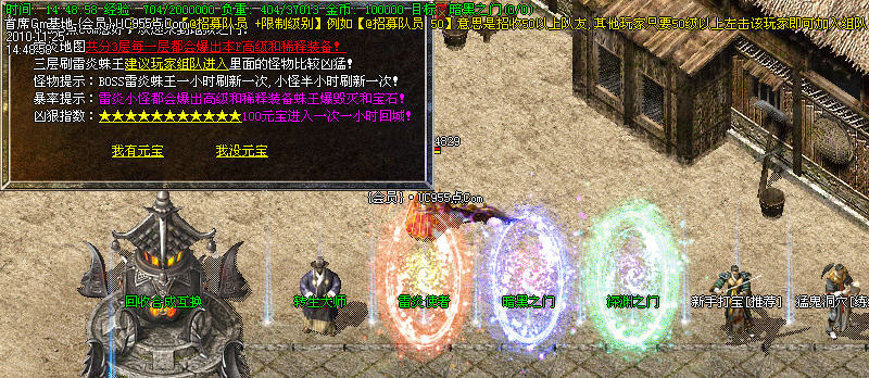 2:元宝传送地图爆本服中级装备。(王者、金牛,倚天)。