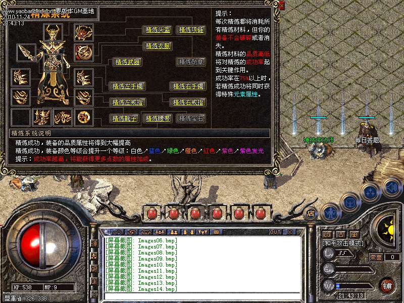 【装备精炼系统】我们一直在追求更强,那么,在都拥有差不多的同等装备下,装备精炼能将你的装备轻易提升到另一个高度,拥有一身紫色传奇级装备,那么走在传奇的每一个角落,都会受到全服玩家追逐欣赏,羡慕眼红的目光!