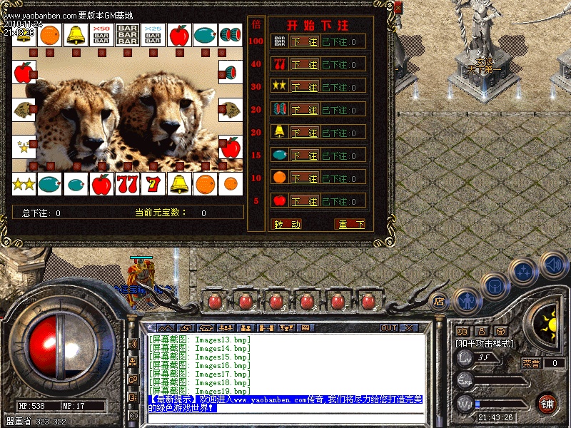 【娱乐系统】:设有二种娱乐博彩系统,1:高仿真带音效雪豹水果机,让你能重新体味到游戏机室的快感.2:适用于全服玩家参与的牌九游戏,庄家坐庄后,其他玩家可在顺门,天门,反门,三处任意下注,每门二张牌,与庄家比点数大小,简单,但能让你感受真正的刺激。兼备运气与智慧以及资产实力!玩家与玩家之间的较量,系统不收取任何费用或税务!