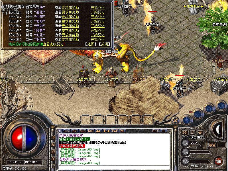 羽化就是大家常见的转生,本站一共九次转生,满转可获得6600点属性点,还有珍贵的【鸿博圣水】,是PK中必须的物品!