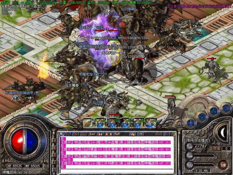 新手玩家到猪7打元宝,中期到冰雪丛林和神秘竹林打65-70装接着到冰宫打70-100装.