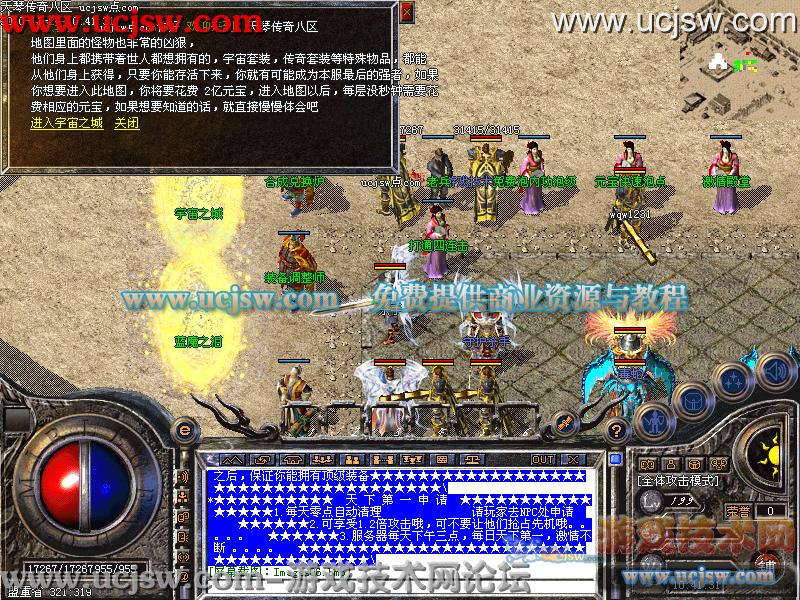 - ☉ V8引擎传奇端游【荒域专属单职业九大陆】Win一键端+配套补丁网站+架设教程