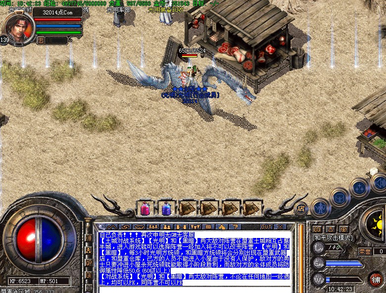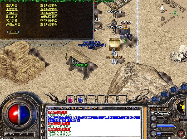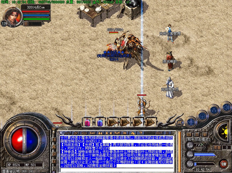 召唤魔王: 可以召唤魔王,不同的道术召唤不同攻击力的魔王(冰咆哮)